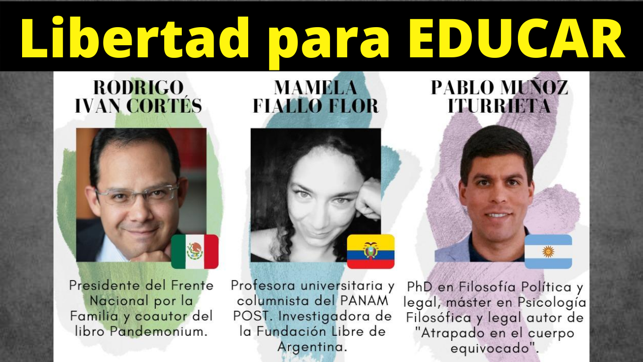Conferencia sobre la libertad para educar, organizada por distintas asociaciones colombianas en conmemoración del «Día nacional de la libertad para educar» (10 de agosto). Con la participación de Rodrigo Iván Cortés, Mamela Fiallo Flor y el Dr. Pablo Muñoz Iturrieta.
