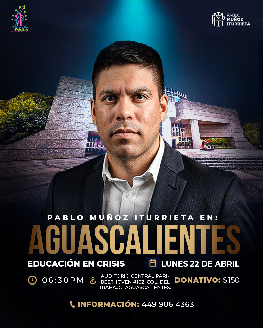 La Educación está en Crisis en todo el mundo, por eso la gran preocupación de los padres es ¿qué podemos hacer? ¿Hay alternativas para que nuestros hijos se eduquen bien y tengan un futuro por delante? Si la educación es algo que te preocupa, te quiero invitar a la conferencia que daré en Aguascalientes hoy 22 de abril a las 6:30 de la tarde en el Auditorio Central Park. ¡Los espero!